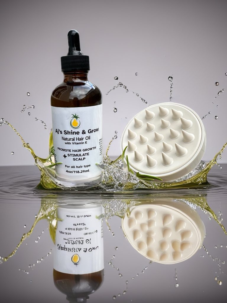 Nourish Your Hair The Natural Way. Our Aj's Shine & Grow Natural Hair Oil is a blend of natural herbs and oil, crafted to promote stronger, healthier and more radiant hair.